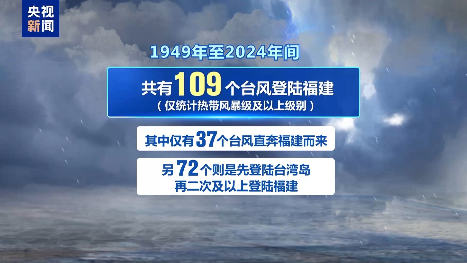 据中央气象台统计,1949年至2024年间,共有109个台风登陆福建(仅统计热带风暴级及以上级别),其中仅有37个台风直奔福建而来,另72个则是先登陆台湾岛,再二次及以上登陆福建。